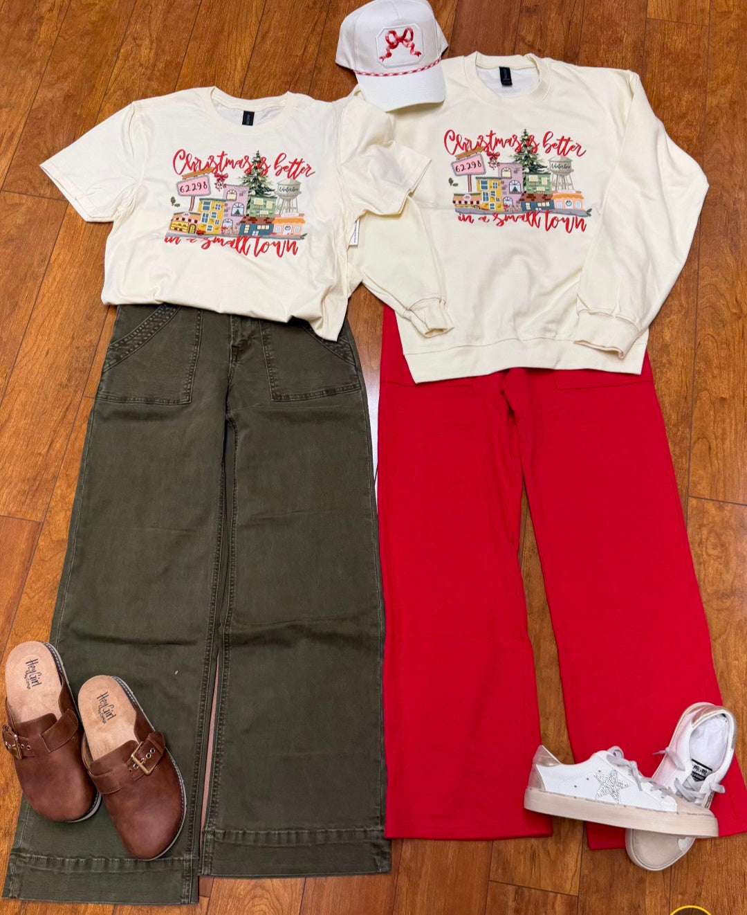 Christmas is Better in a small town is printed on unisex sweatshirt.